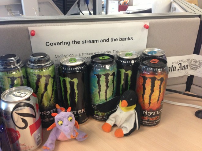 Figment and I are ready to cover the banks. We’re both highly caffeinated, and we love penguins.